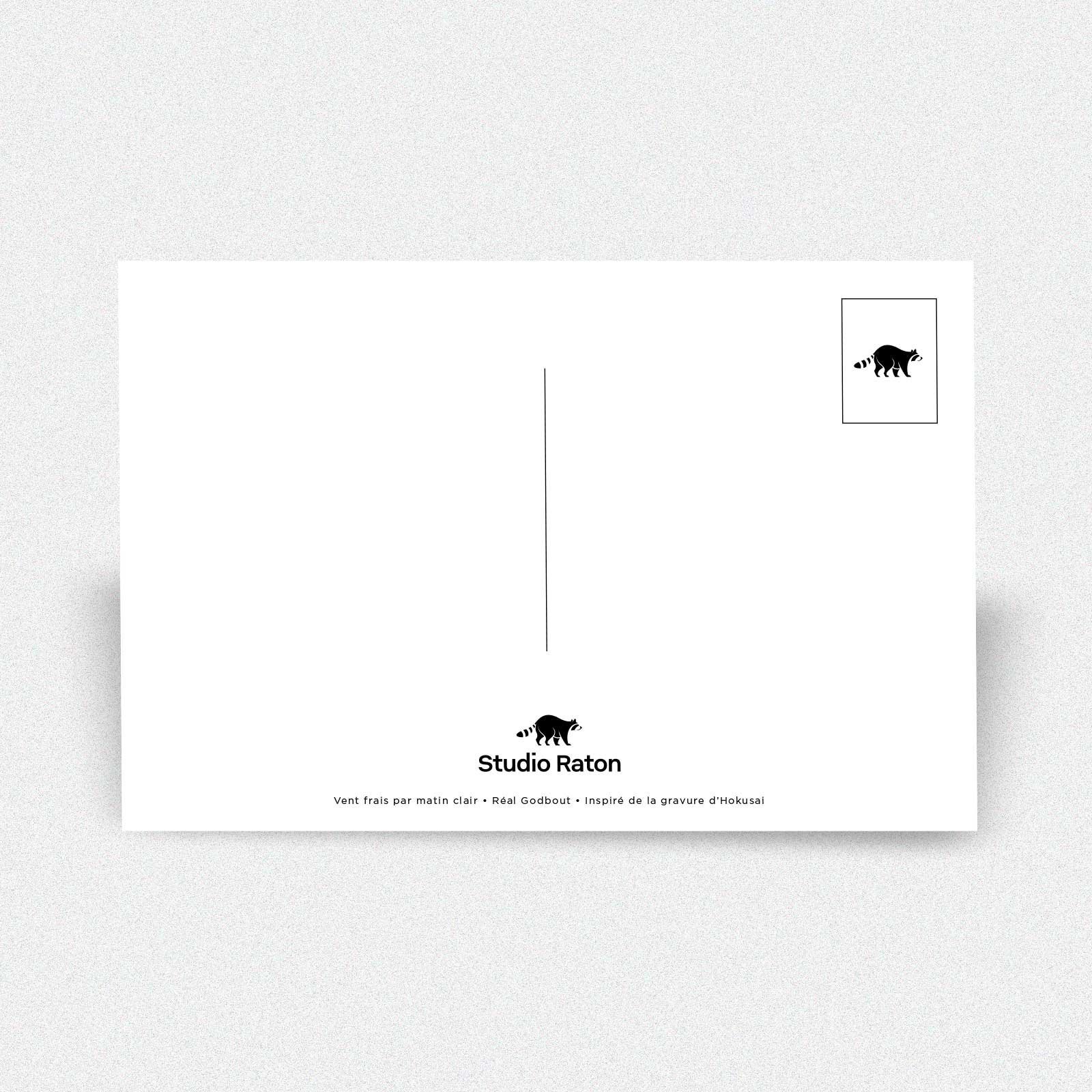 L'oeuvre a été créée sur support numérique par Réal Godbout et elle a été adaptée au format carte postale par Studio Raton.